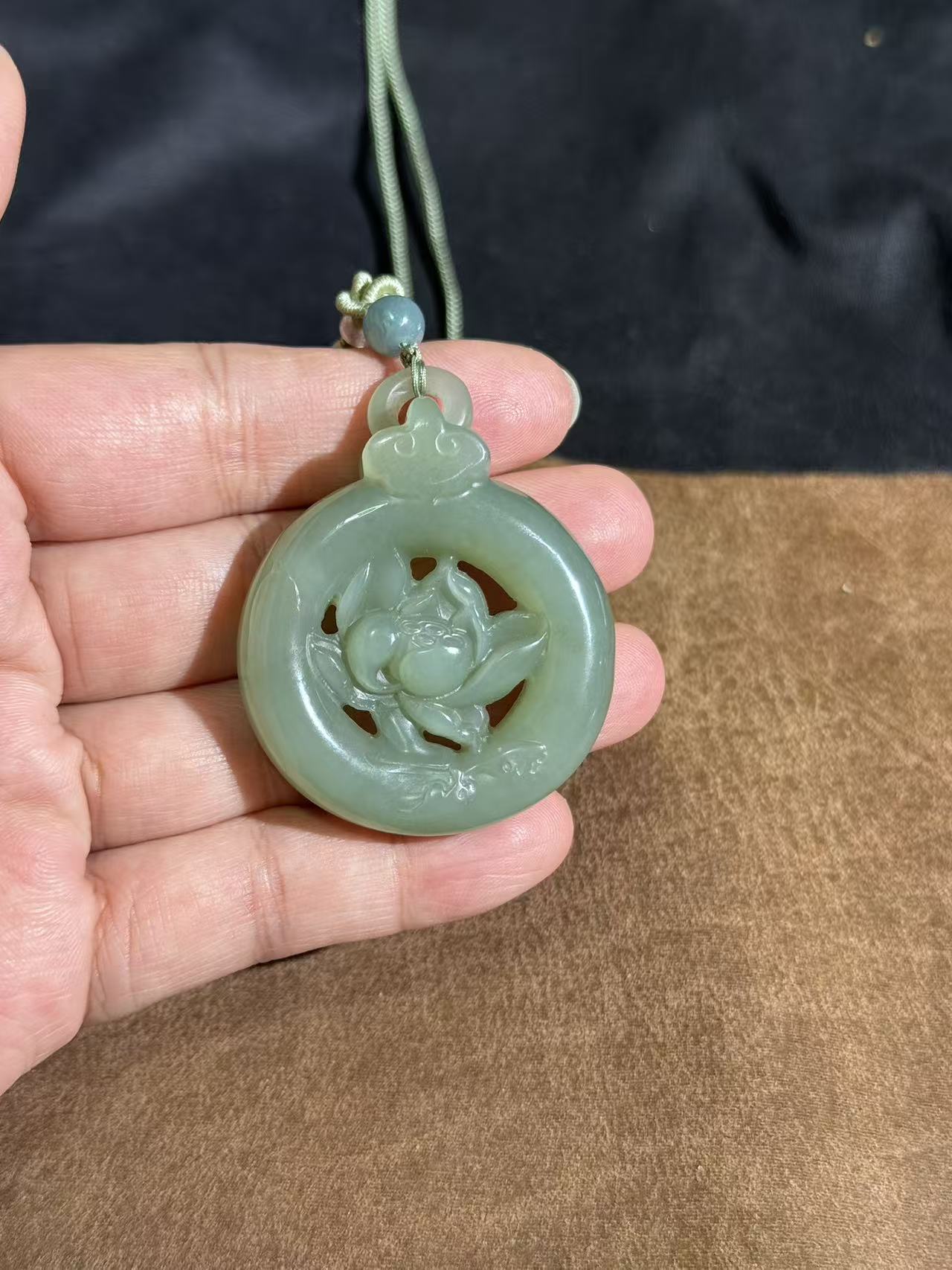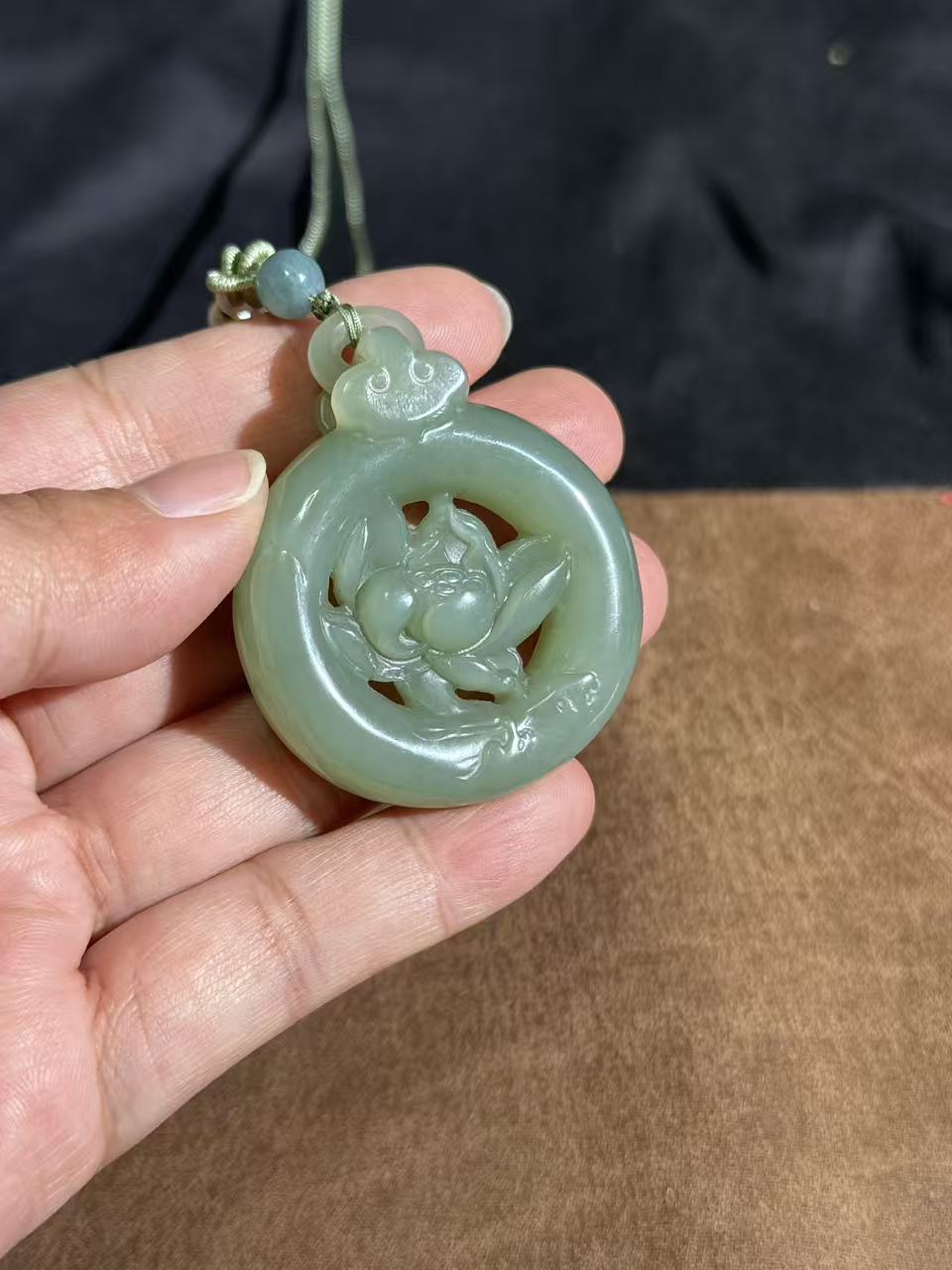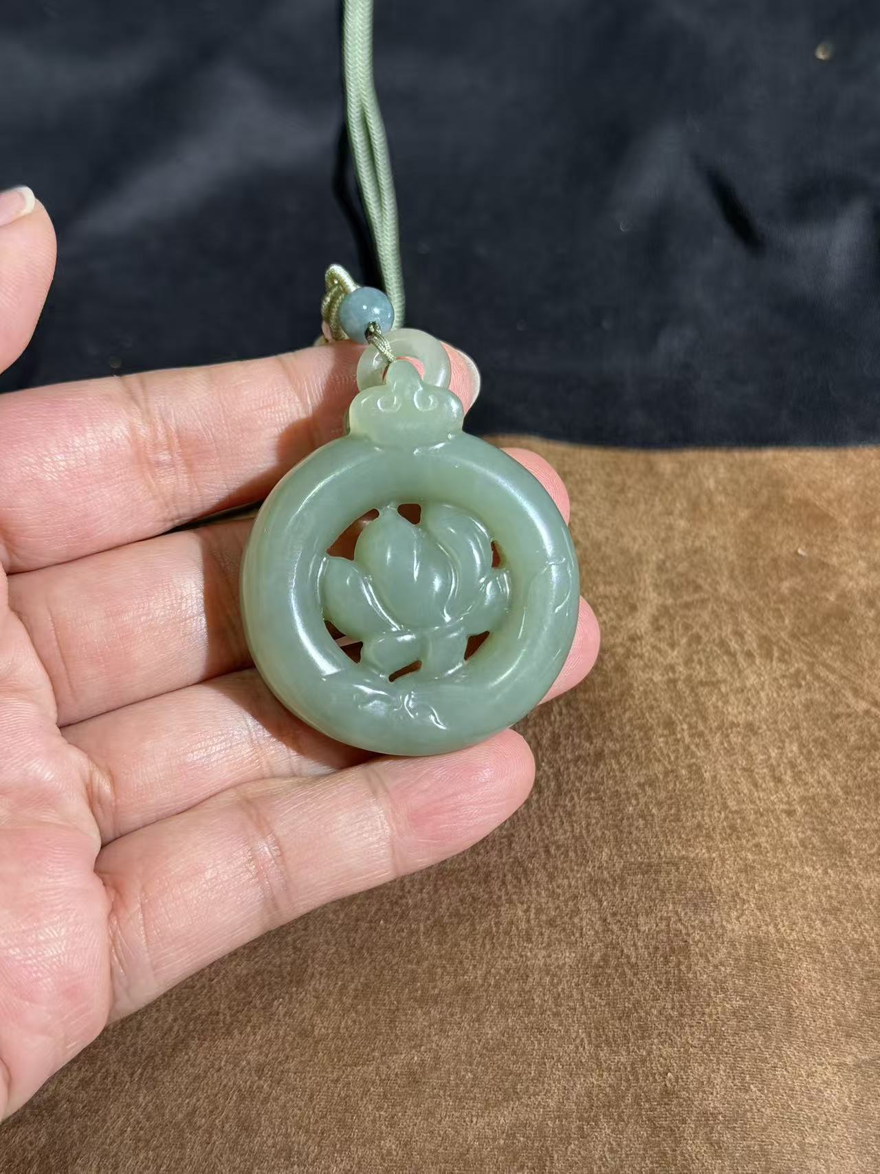 This elegant pendant is crafted from premium Hetian lake green jade, celebrated for its fresh, tranquil hue and smooth, luminous texture. The circular design features an intricate hollow-out lotus flower—a timeless symbol of purity, enlightenment, and harmonious blessings in Chinese culture, representing the wish for a life filled with peace, clarity, and spiritual growth.
