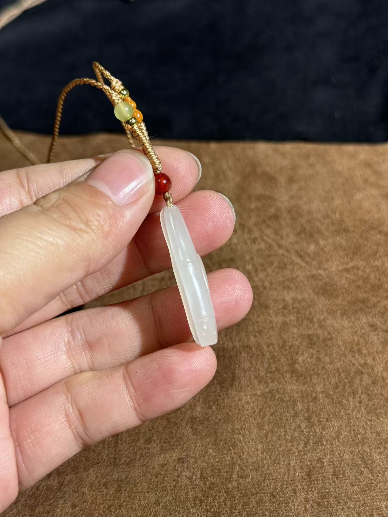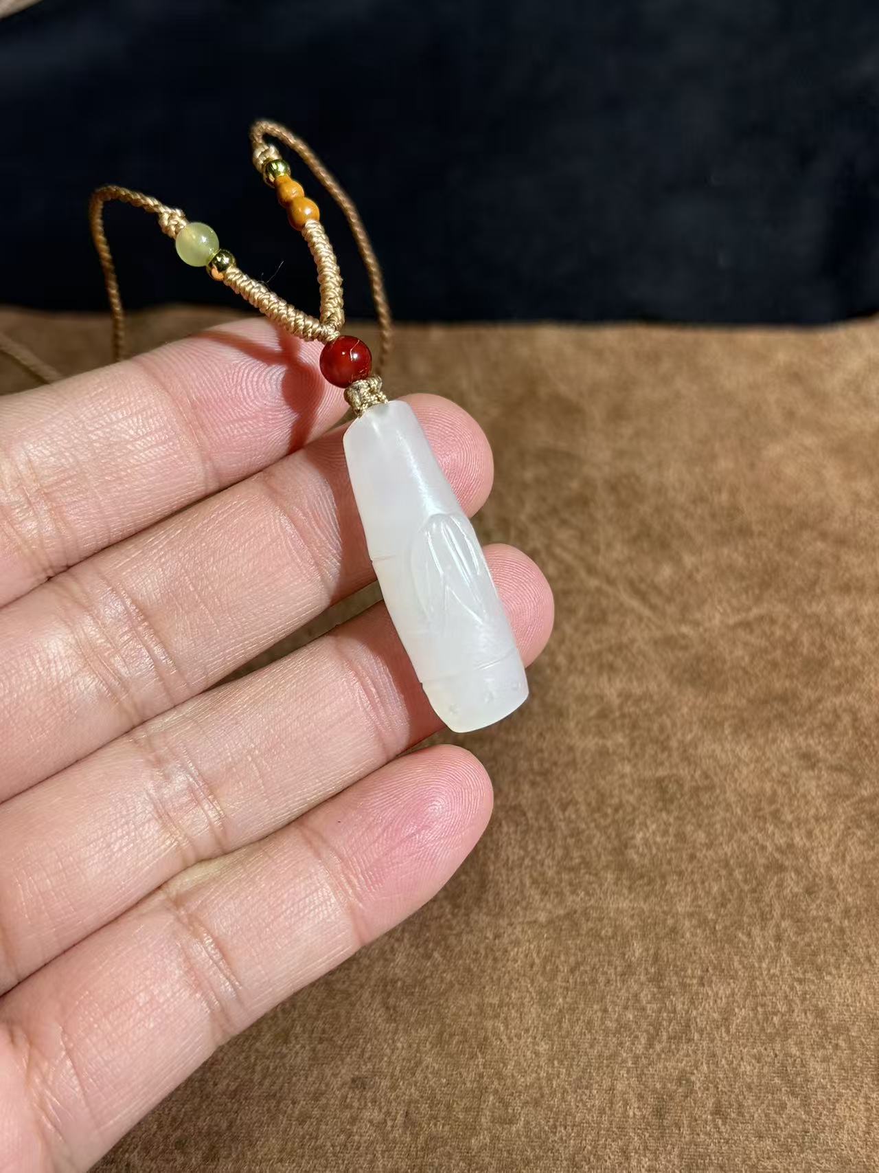 Handcarved Hetian Suet White Jade Bamboo Charm – Career Success Pendant